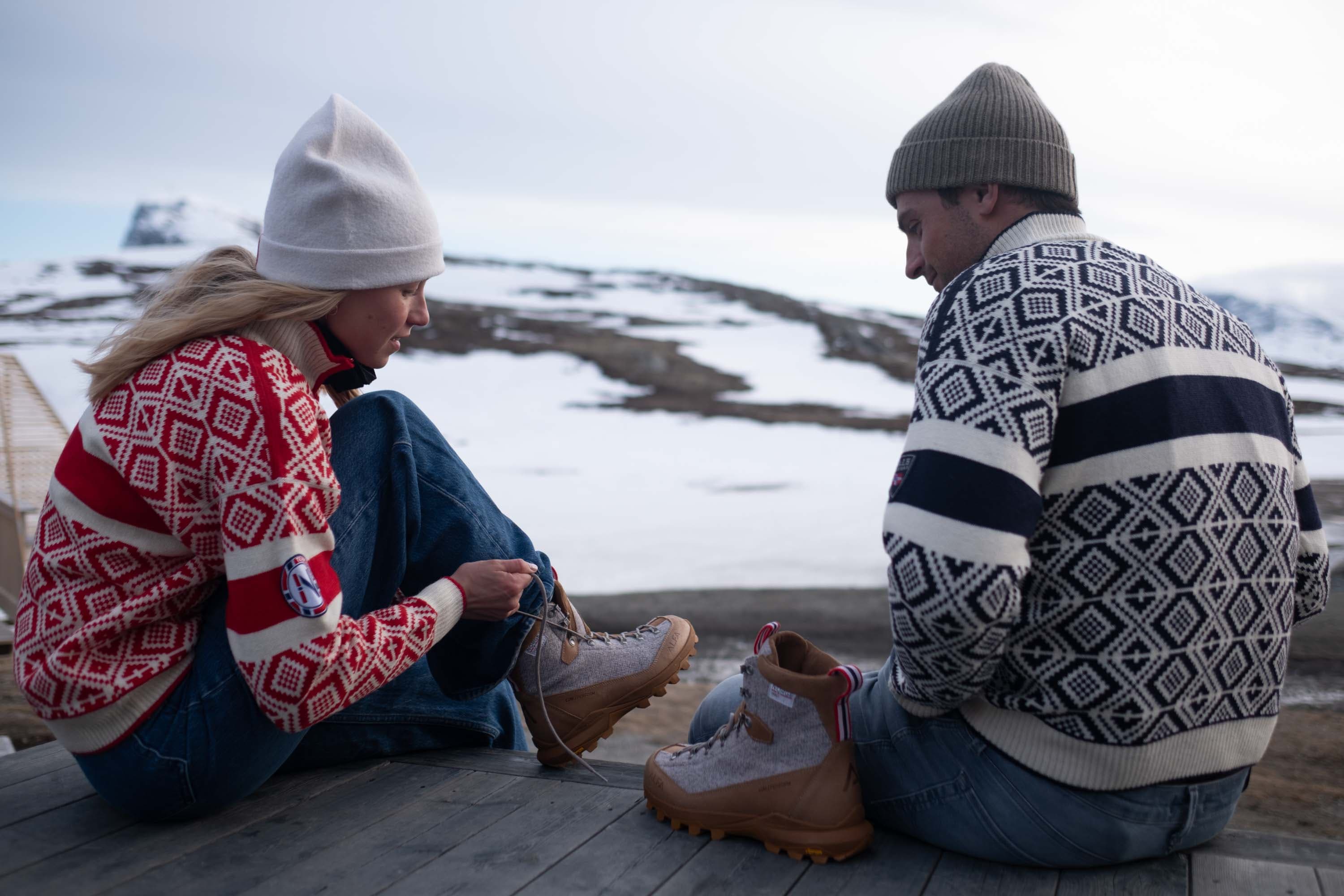 Winter hiking boot with Norwegian heritage and modern technology Lun is developed for the Olympics and Paralympics in Cortina 2026 – a tribute to Norway’s proud winter sports traditions and our strong heritage in wool and craftsmanship. Natural and robust materials - Norwegian wool from Gudbrandsdalens Uldvarefabrik – naturally water-repellent, breathable. Certified with EU Ecolabel and the Nordic Swan. - Premium Perwanger leather – durable and protective. - A solid leather rand around the entire boot that repels mud and extends its lifespan. Technology for winter adventures - Vibram® Litebase outsole with ICETREK rubber compound and Vibram® traction lugs – provides exceptional grip on slippery surfaces. - Lightweight EVA midsole for stable support and comfort. - Intuitive double-lock system for easy and personalized adjustment. Lun is more than a boot – it’s a perfect balance of style, functionality, and Norwegian heritage. Designed to tackle winter’s toughest challenges and ready to help athletes perform at the Winter Olympics 2026. The shoe is sold without the Olympic logo.