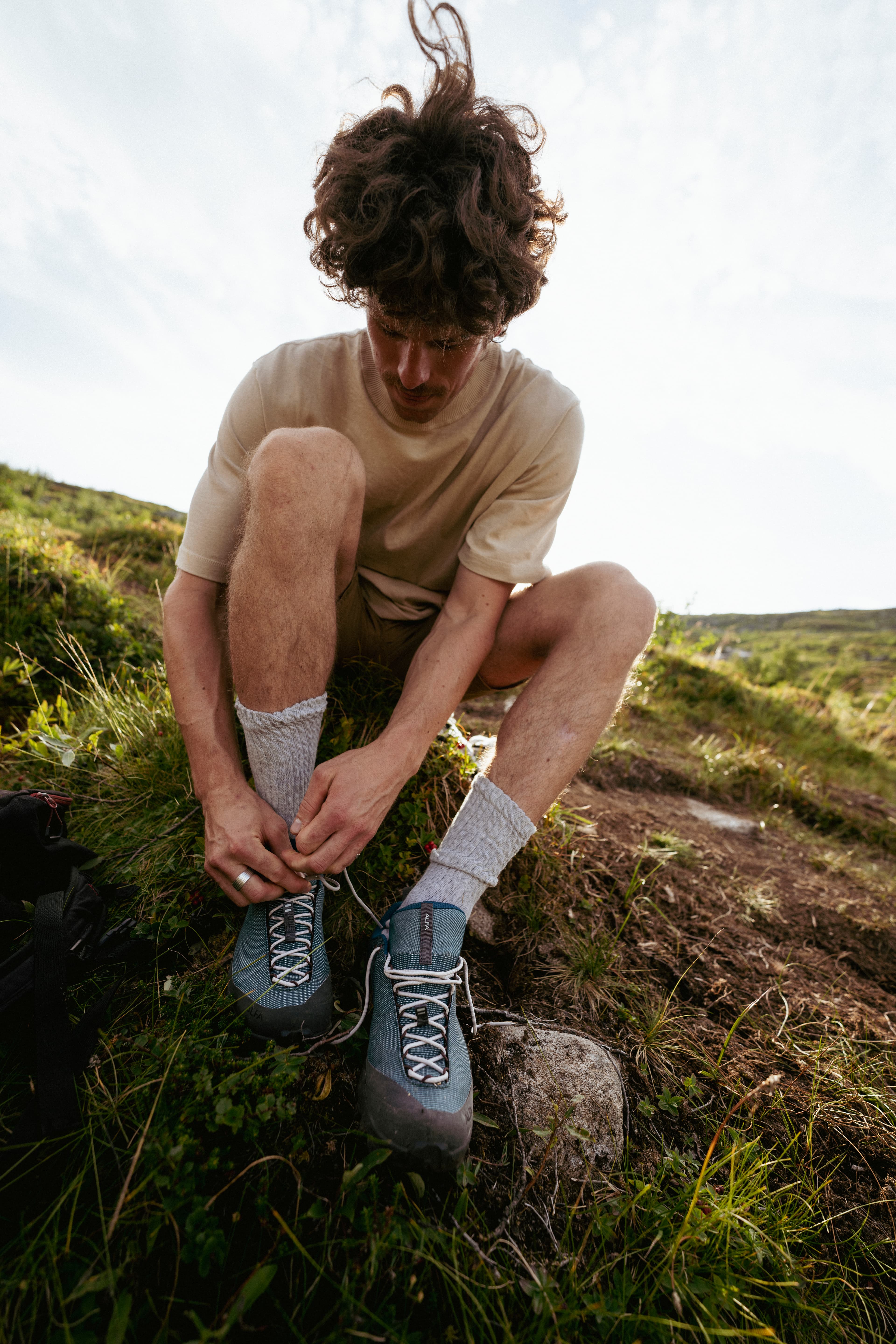 Lightweight. Agile. Waterproof. Introducing the Loen—a low-cut hiking shoe made for those who tackle technically demanding terrains & steep mountain trails. Combining cutting-edge materials with ergonomic design, the Loen offers unparalleled comfort and performance for your most challenging adventures. Not sure which size to choose? If you're between two sizes, we recommend going one size up. Why Choose the Loen?Lightweight Design: Weighing just 406 g (EU 43), the Loen minimizes fatigue, allowing you to hike longer and farther. The Vibram Litebase technology reduces the soles weight by 30%. • Superior Traction: Equipped with a Vibram® Megagrip outsole and traction lugs, the shoe provides exceptional grip on wet and dry surfaces. • Waterproof & Breathable: The GORE-TEX® with ePE membrane (PFAS Compliant), keeps your feet dry. • Durable Upper: Constructed with a bio-circular Dyneema® fiber blend, the upper offers high quality and longevity. • Ergonomic Fit: The NORTIK last is designed to maintain the foot's natural movement, providing stability and comfort on uneven terrain. • Extended Lacing System: Allows for a customized fit, enhancing support and reducing pressure points during long hikes. Sustainable & Repairable The Loen is designed with sustainability in mind, featuring bio-circular Dyneema® fiber and PFAS-free materials. Its construction allows for repairs, extending the shoe's lifespan and reducing environmental impact. Ready to Elevate Your Hiking Experience? Don't let challenging terrains hold you back. Step into the Loen and embrace challenging trails with confidence.