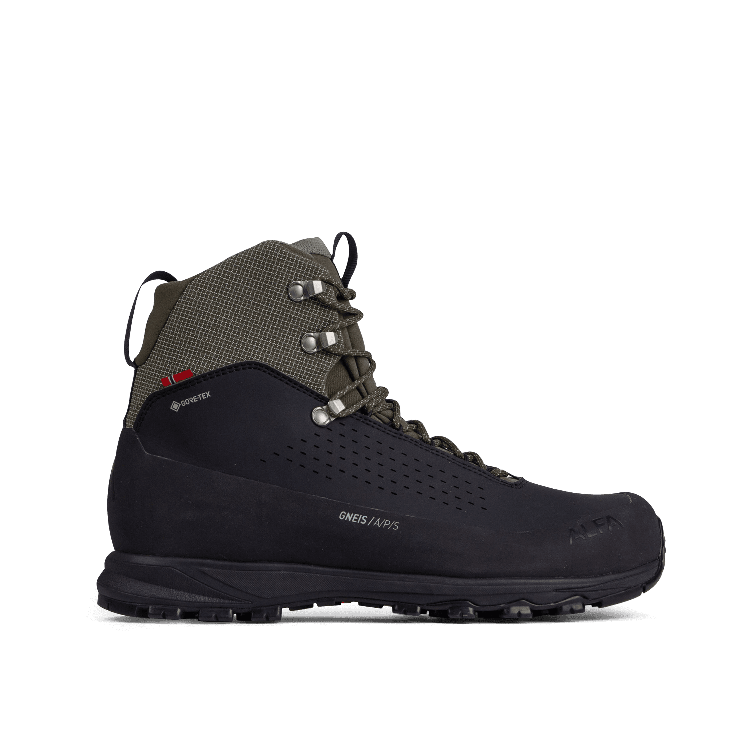 The Gneis Hybrid Boot is built for the rugged Norwegian mountains but designed to feel just as natural in urban environments. Combining durability, protection, and lightweight comfort, Gneis delivers confident performance across changing terrain and conditions. Top Reasons to Choose Gneis Durable, Lightweight Upper. The AlfaAir™ material combined with abrasion-resistant rip-stop delivers long-lasting protection while keeping weight to a minimum. Made with 25% GRS-certified recycled content. Dry, Comfortable Feet in Any Weather. Equipped with GORE-TEX® Prism XT / Jazz XT, the boot provides waterproof protection and breathability, keeping your feet dry and comfortable throughout the day. Cushioned Support for Long Days. A lightweight EVA midsole absorbs shock and provides cushioning and support, reducing fatigue on long or uneven routes. Grip That Holds on Any Surface. The Vibram® Megagrip BR5A outsole offers secure traction on wet rock, loose gravel, and mixed terrain. Stable, Secure Fit. The Alfa Double Lock system allows independent adjustment of the forefoot and ankle, delivering a precise, supportive fit. Classic Comfort Inside. A classic insole provides reliable underfoot comfort and support for everyday use and longer hikes alike. Details That Last. Impregnated laces improve durability and water resistance, helping maintain performance over time. Footprint: Open factory list Designed for full repairability PFAS free ePE GORE-TEX® membrane
