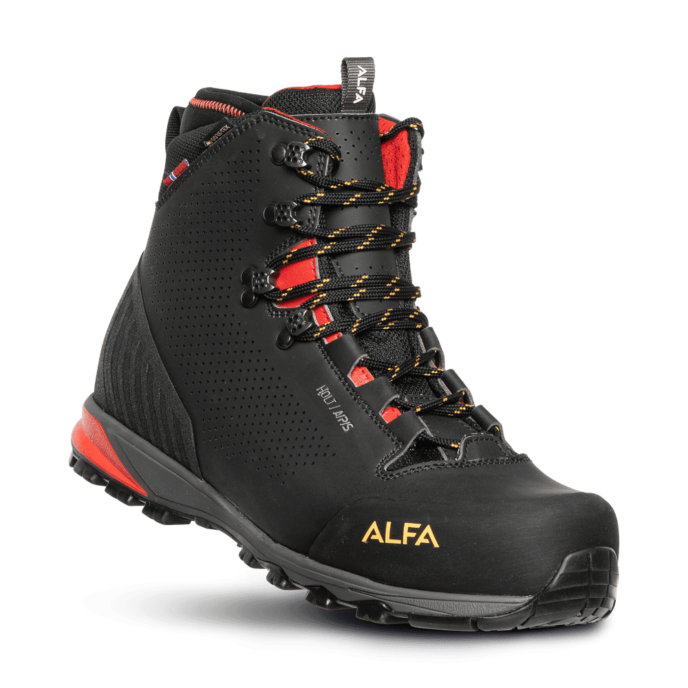 ALFA Holt A/P/S GORE-TEX er en lett og stabil tur- og fjellstøvel med ekstra innebygget demping for turgåere som ønsker å gå komfortabelt i marka eller på fjellet. Det vedlikeholdsfrie og slitesterke AlfaAir™ materialet med GORE-TEX membran sikrer vanntetthet og gode pusteegenskaper med lavt behov av vedlikehold og maksimal slitestyrke, slik at føttene holder seg komfortable hele dagen, uansett vær. Den nyutviklede Vibram® Grip ARG yttersålen gir utmerket grep grep selv i våte forhold og på varierte underlag. Den spesiallagde sålekonstruksjonen kombinert med EVA mellomsålen gir ekstremt god demping. Med Holt A/P/S GTX vil du nyte turopplevelsene. Modellen har en tettsittende passform. Hvis du har en bred fot eller er usikker på størrelsen, anbefaler vi at du velger den større størrelsen.