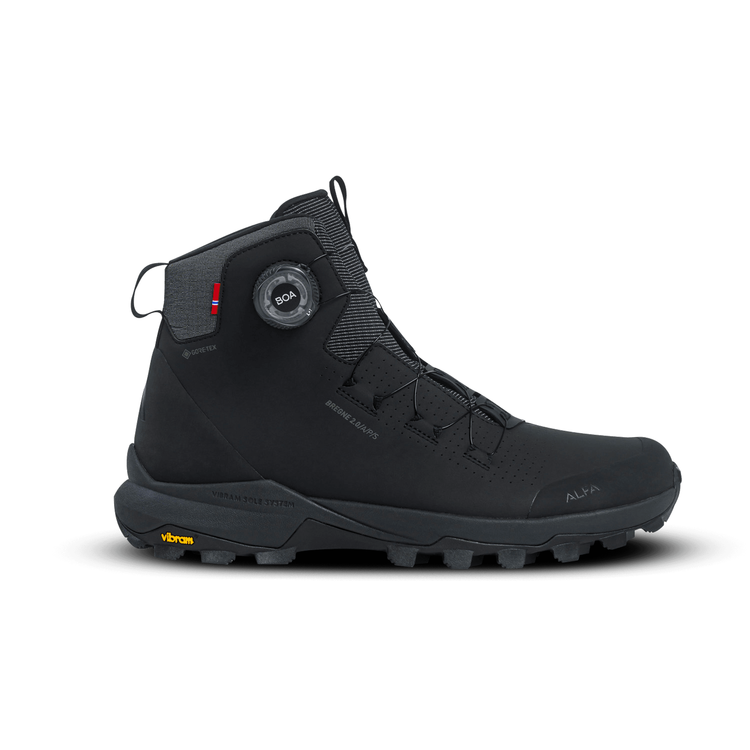 Raffinert ytelse. Enestående komfort. Urokkelig grep. Gjør deg klar for oppgraderte Bregne 2.0 – en elegant, høyytelsestursko for modige turgåere som beveger seg raskt, utfordrer grenser og forventer utstyr som holder tritt. Designet for variert terreng og hverdagsflukt, kombinerer denne skoen smidighet med robust pålitelighet i hvert steg. Den er synonym med komfort, lav vekt, funksjonalitet og beskyttelse mot vann. Hva gjør Bregne 2.0 unik? Lett og klar for stien. Med en vekt på kun 462 gram (EU 43) gir Bregne 2.0 deg friheten til rask gange uten å gå på kompromiss med støtte eller struktur. • Trygg i all slags vær. GORE-TEX® med ePE-membran (PFAS-kompatibel) holder føttene tørre uansett vær. Pustende, vanntett og laget for uforutsigbare forhold. • Maksimal komfort. Bygget på Alfas NORTIK-lest, omslutter Bregne 2.0 foten samtidig som den gir rom for naturlig bevegelse. Den holder deg balansert, reduserer tretthet og gir kontroll når hvert steg teller. • Alfa air®. Vedlikeholdsfri – klar for skarpe steiner, røtter, lange distanser og mange års eventyr. • Perfekt passform med BOA®-presisjon. Finjuster passformen på sekunder. BOA® Fit System gir mikrojusteringer for en låst følelse som enkelt kan tilpasses underveis. • Terrengtilpasset grep. Utstyrt med Vibram® Megagrip-yttersåle, Litebase-teknologi og gripeklosser gir skoen eksepsjonelt grep på både våte og tørre underlag – samtidig som sålens vekt reduseres med 30 %. Testet i terrenget. Godkjent i hverdagen. Utviklet med ekte terreng og turgåere i tankene, er Bregne 2.0 en favoritt blant dem som forventer teknisk perfeksjon – uten å ofre smidighet eller komfort. Enten det er din faste turkamerat på søndagsturer eller til spontane eventyr, leverer denne skoen – hver gang. Klar for å BOA deg ut i friheten? Oppgrader turutstyret ditt med Bregne 2.0 – og gå med mål og mening. Den oppgraderte varianten oppleves som litt liten i størrelsen, har du Bregne fra tidligere anbefaler vi å gå opp en størrelse. Fotavtrykk: Åpen fabrikkliste Alfa Air med resirkulert nylon ePE GORE-TEX-membran Biobasert Dyneema® Godkjent fri for PFAS